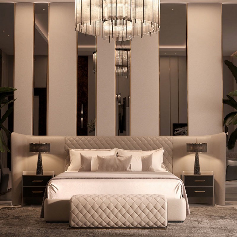 Dream of style in our marvelous Charla Bed! This magnificent design becomes the focal point of your bedroom design. Made with grey and black leather, and impeccable craftsmanship, this larger-than-life bed design becomes an impressive statement with luxury details. Wake up in luxury in our Charla XL Bed.