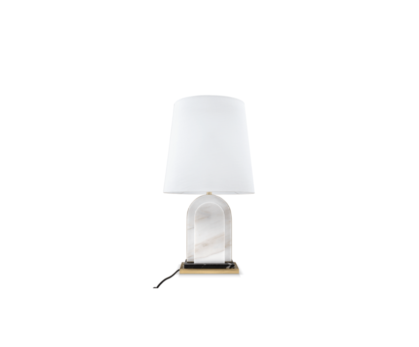 Modern table lamps express their characters through form, material, or function to match any design. Reminiscent of a well-known element of classical architecture, the Margaux Table Lamp is an elegant and timeless marble and brass table lamp that will create a cozy ambiance in any modern hallway.