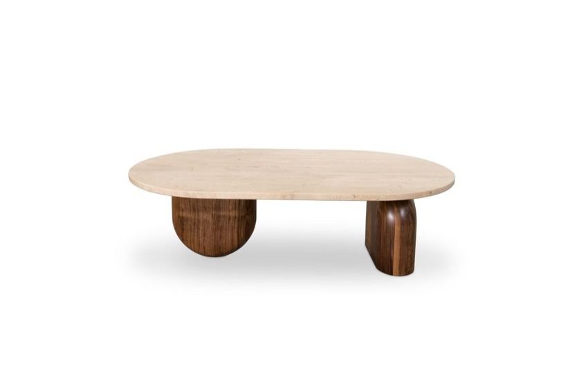 Philip Long Center Table takes Ezra’s challenging concepts of design and interprets them in an all-new and natural way. The structure of this magnificent center table is geometrical and entirely made out of wood and travertine stone. The soft, organic shapes of the legs support the round travertine top, highlighting the natural beauty of the high-quality materials. This piece is a combination of top design and bespoke craftsmanship.