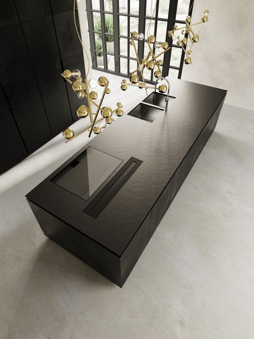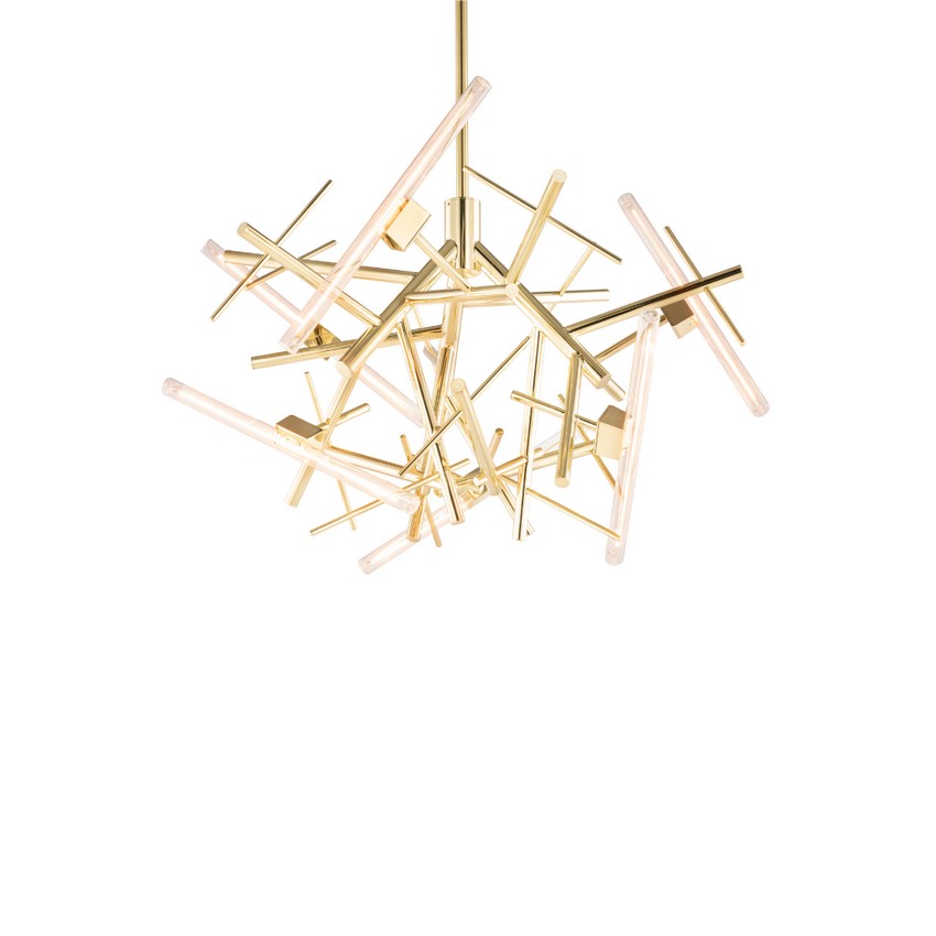 Linea Chandelier makes a precise yet playful statement through thin lines of beauty. Floating through the sky, as if a magical formula brought to a standstill the whirlwind of steel, fire, and light. Frozen, both in time as well as in space. Just like airplanes can leave a composition of line-shaped clouds – the passing proof of human movement in the air – the Linea is like a drawing of illuminating lines in the sky. Temporarily mid-air, permanently illuminating. Creating a beautiful light is like good architecture: a matter of proportions.