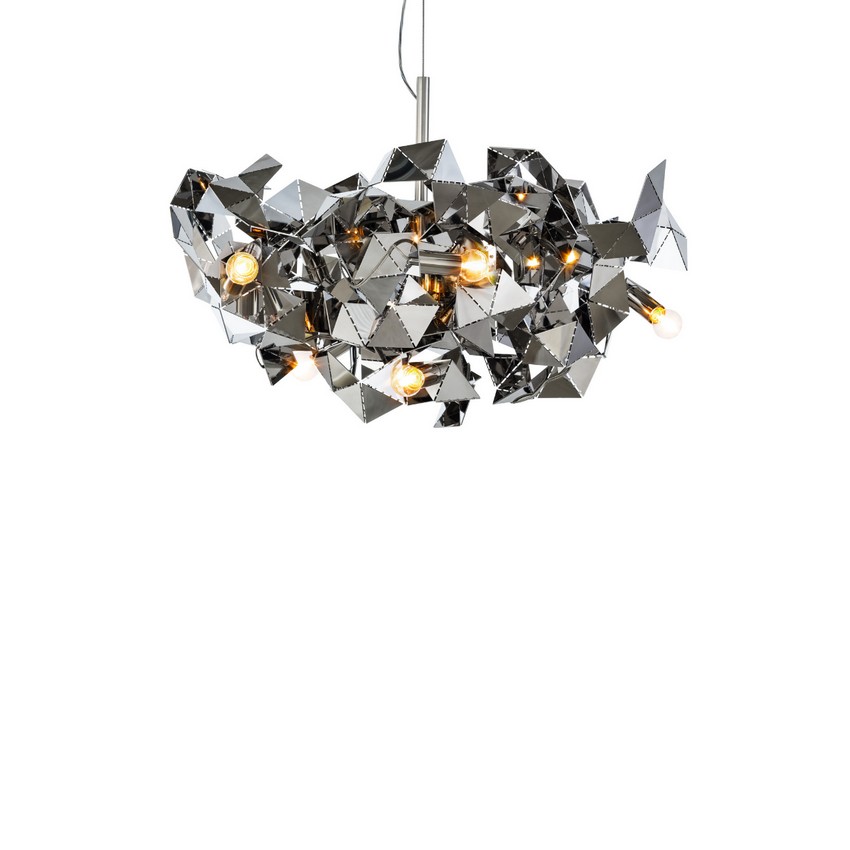 Fractal Chandelier is a breathtaking lighting design that is made with stainless steel. Fractal is a natural phenomenon as well as a mathematical set that exhibits a repeating pattern, displayed at every scale. The organized chaos of the reflecting elements of the Fractal disperses the light beautifully in all directions.