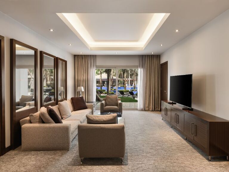 At 156 sq. m, the Executive Suite delivers the essence of luxury living in New Cairo. This suite includes: a beautifully furnished bedroom, a grand dining room and a spacious, elegant living room ideal for entertaining or relaxing. Its layout and décor make it a top choice for business travelers and guests seeking a truly exclusive stay. Whether choosing a deluxe room or a signature suite, guests enjoy a blend of Thai hospitality, Egyptian elegance, and modern comfort — making Dusit Thani LakeView one of the top hotels for accommodation in New Cairo.