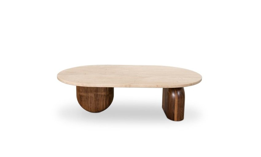 Philip Long Center Table takes Ezra’s challenging concepts of design and interprets them in an all-new and natural way. The structure of this magnificent center table is geometrical and entirely made out of wood and travertine stone. The soft, organic shapes of the legs support the round travertine top, highlighting the natural beauty of the high-quality materials. This piece is a combination of top design and bespoke craftsmanship.
