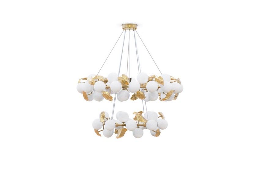 As the Queen of the Greek Gods, Mother of Nature and the embodiment of Honour and Maternity, Hera represents the blossom of a golden new era full of life and inspiring beauty. Defined by strong and emotional paths filled with intricate details, this mythological entity is the magical inspiration behind this lighting piece. The Hera Round II Suspension Lamp is molded to resemble the features and look of a round golden branch, with two different tiers with pendant lights hanging from around the structure.