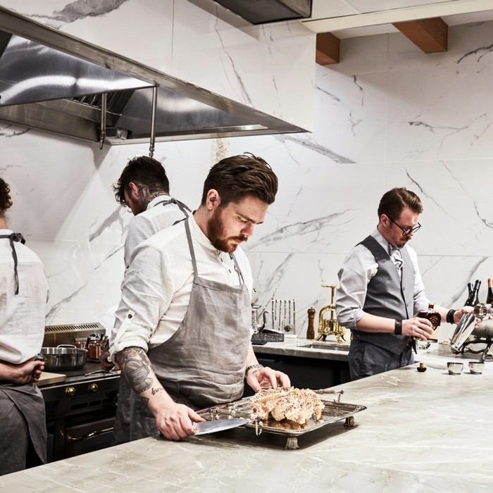 Hudson House was the couple’s inaugural effort, a 10-year-old business they named for their son, who’s now depicted snorkeling on a mural out front, trident in hand. The interior underwent a light and bright refresh in 2018. Now guests at the L-shaped bar and tables will find market-driven, Asian-influenced small plates like a ginger-brined chicken with colorful “unicorn” noodle salad.