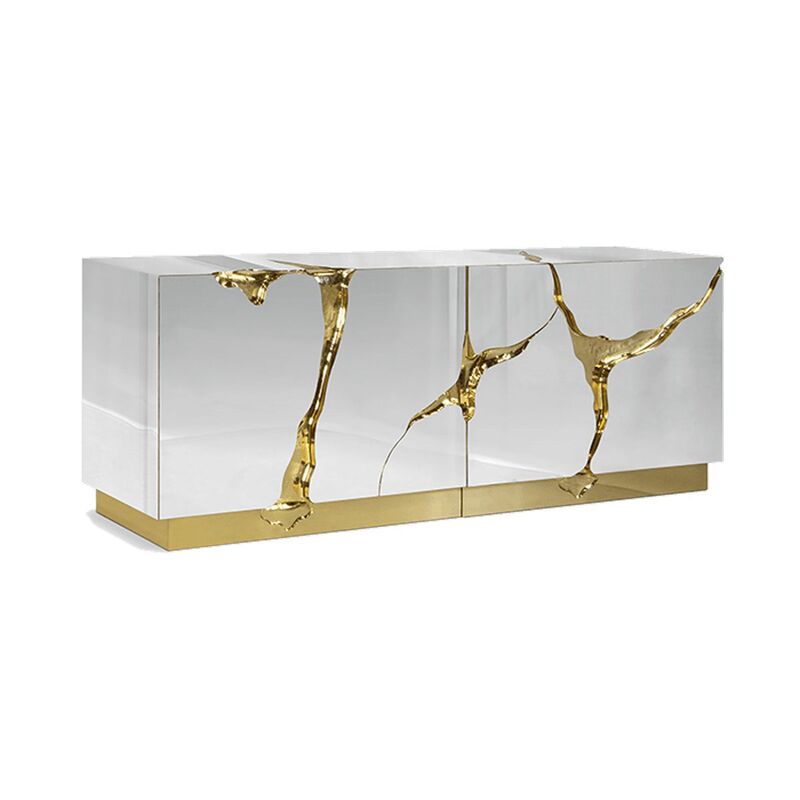 Lapiaz Sideboard originates from one of Boca do Lobo’s iconic design pieces. Based on the same aesthetic that created a legacy, this piece takes exceptional craftsmanship and design to a new realm. Consisting of two individual modules, the Lapiaz is finished in polished stainless steel that portrays a perfect mirror, with a poplar root wood veneer interior.