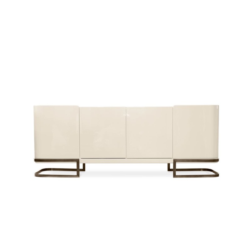 Latte Sideboard is the perfect piece to complete a simple and contemporary design. Versatile, functional, and smooth, Latte Sideboard is lacquered in high gloss cream and gently lies in dark bronze matte feet, with strong lines and a firm personality. This charming sideboard brings instant character and hygge to a minimalist design.
