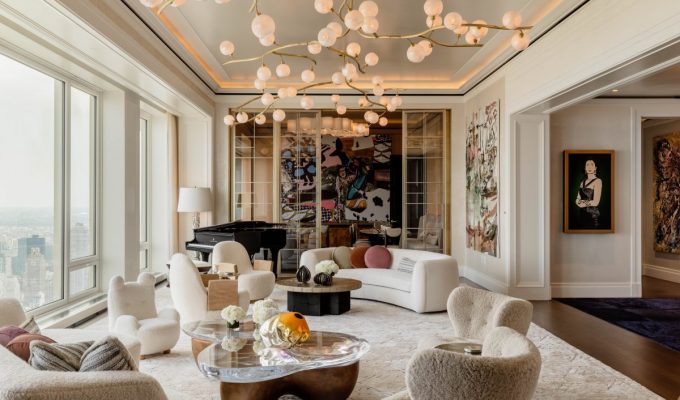 This luxury penthouse blends form, function, art, and elegance into a perfect unison. It exudes the essence of style and luxury, blending comfort with bold patterns and artistic cues.