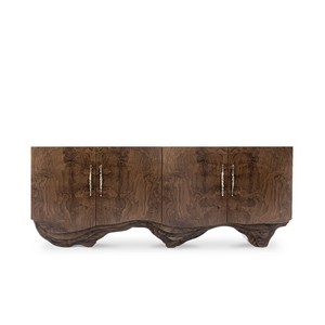 Benny Benlolo chooses a statement chair to captive the attention of the entryway, and there’s nothing better than the Drapesse Armchair, by Koket, that it has a lot of character, to steal the attention of the room. Contrasting with such an iconic furniture piece is the Huang Sideboard, by Brabbu, this wood sideboard brings instant character to the neoclassic interior design.
