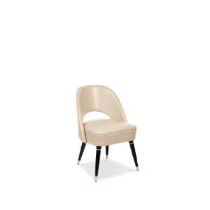 In this project we can see the use of our Collins Dining Chair, this dining chair is designed with a classic retro chic feel and comes finely upholstered in velvet, in this ambiance we can see the synthetic leather piece, supported by tapered glossy black legs with rich accents of polished brass. It has welted stitches on the seat and a stylist degree reclining on the crescent open back. The backrest is convex, allowing comfortable seating, and perfect to pair with a big Dining Table