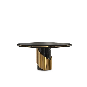 Combining this amazing dining chair with a powerful table, The Littus Dining Table, this luxury dining table has come to symbolize the spiral, is a curve in the space, which runs around a center in a special way like the great decisions are taken around powerful tables among determined minds. With a quality signature, Littus Dining Table embodies handmade techniques such as marble cutting, gold-plated brass, executed by some of the best craftsmen.