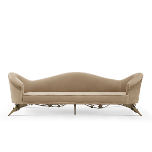 As a sofa we can observe a piece that gives a Modern Classic atmosphere unique to the Living Room, the Colette II, the tribute to Parisian Femininity. The vibe is flirty, a little delicate, ever so slightly vintage. Fully upholstered tight back sofa with an elegant lacquered band leading to a sleek and elegant feet.