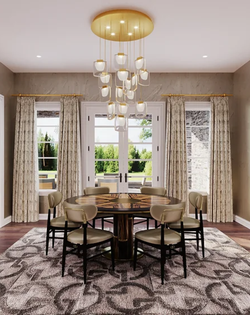 In the Lavish Estate project, the Babel Chandelier by Luxxu adds a touch of mythical elegance with its gold-plated brass and crystal design. A true statement piece, it elevates the space with its opulence and intricate details, perfectly complementing Gilles Clement’s vision of luxury and sophistication.