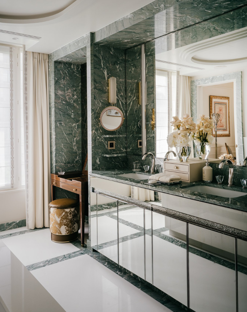 Tristan Auer’s design at the Four Seasons Hôtel George V in Paris is a true masterpiece, blending classical inspiration with modern sophistication. Known for his unique ability to merge timeless elegance with contemporary style, Auer uses a palette of warm neutral tones—soft beiges, elegant taupes, and creamy whites—creating a refined and inviting atmosphere. These colors are beautifully complemented by rich textures such as velvet, polished wood, and marble, enhancing the sense of understated luxury. Inspired by this iconic project, Covet House recognized the perfect balance of comfort and elegance in Auer’s work. With Covet House’s impeccably crafted furniture, it’s possible to recreate the essence of this design, bringing warmth, sophistication, and timeless style to any space.