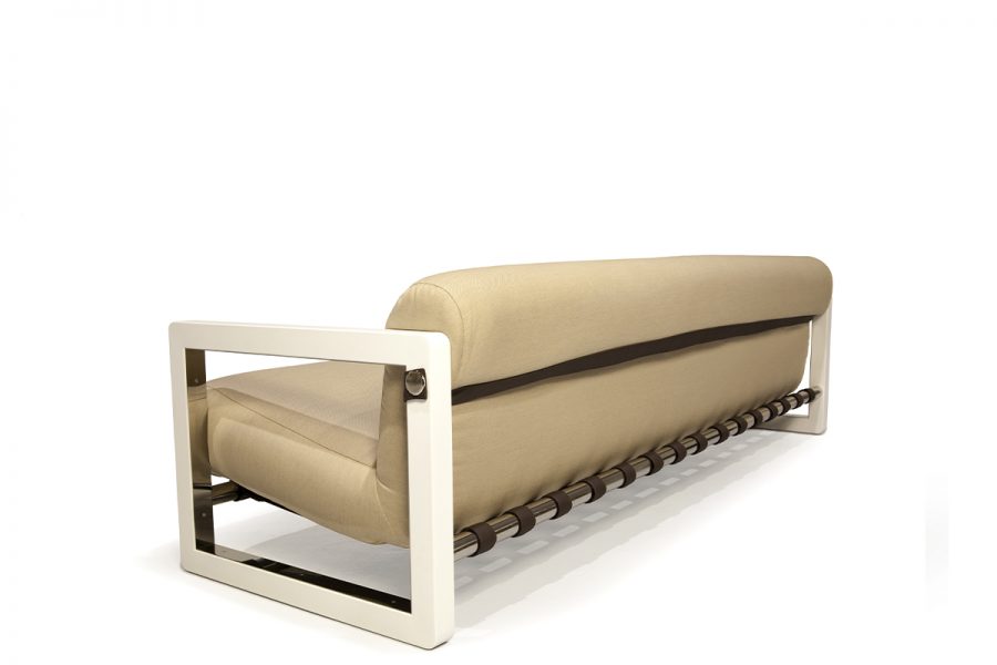 MATERIALS AND FINISHES:Straps: Synthetic Leather, Structure: Lacquered stainless steel and Brushed stainless steel, Upholstery: Acrylic Fabric