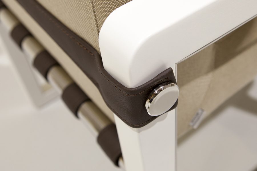 Straps: Synthetic Leather, Structure: Lacquered stainless steel and Brushed stainless steel, Upholstery: Acrylic Fabric