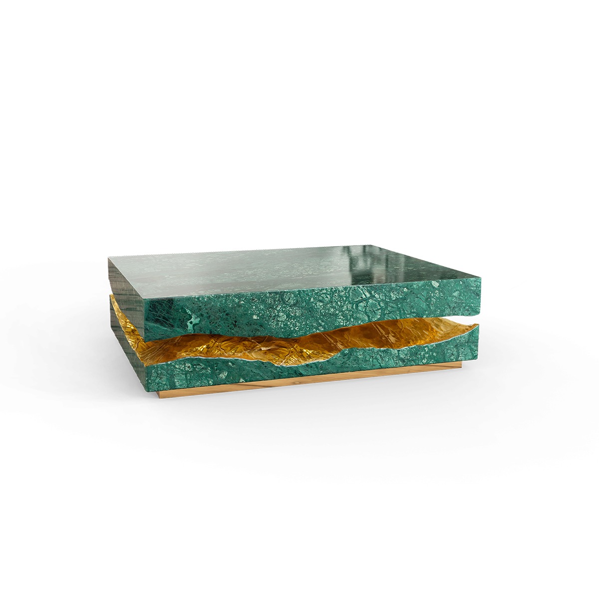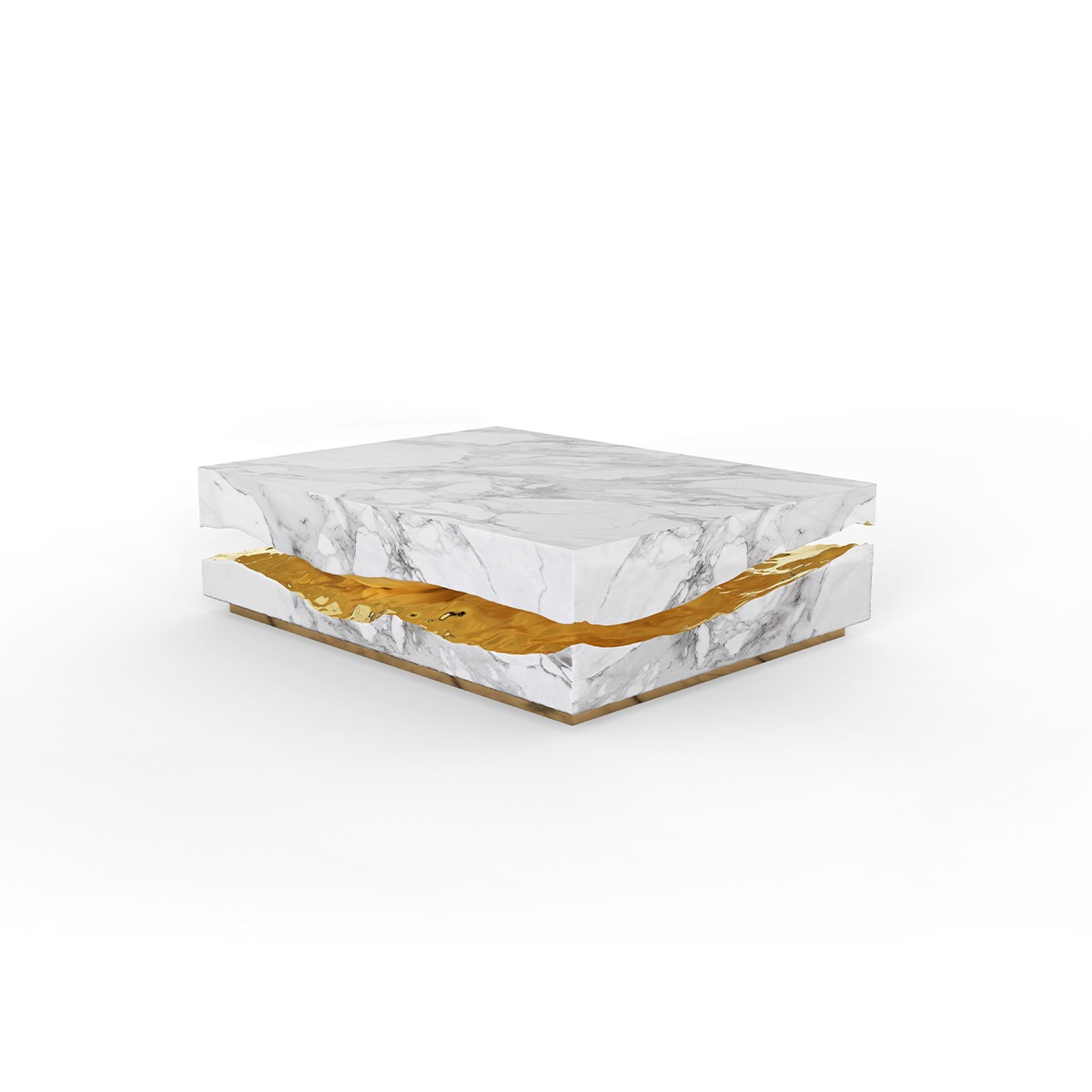 The Quarry Center Table takes exceptional craftsmanship and design to a new level of sophistication. Inspired by raw stone’s natural forms and beauty, this coffee table is a celebration of organic elegance. Made from Portoro marble, its surface displays unique natural veins that tell a story thousands of years old. Complementing this natural beauty, the polished brass frame adds a luxurious shine, creating a harmonious contrast with the marble. The hand-carved details in the marble and brass convey a sense of movement and fluidity. At the same time, the combination of noble materials ensures that this coffee table is as durable as it is beautiful. The Quarry Center Table brings a new perspective to contemporary interior design, offering a duality of strength and sophistication that transforms any space.